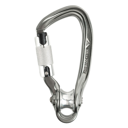 Защёлка карабина открывается с противоположной от ролика стороны для более легкой установки на различных устройствах и точках крепления. Тип защелки Keylock облегчает выщелкивание, автоматическая муфта карабина ускоряет работу. Карабин имеет Н-образный профиль, обеспечивающий оптимальное соотношение массы и прочности.