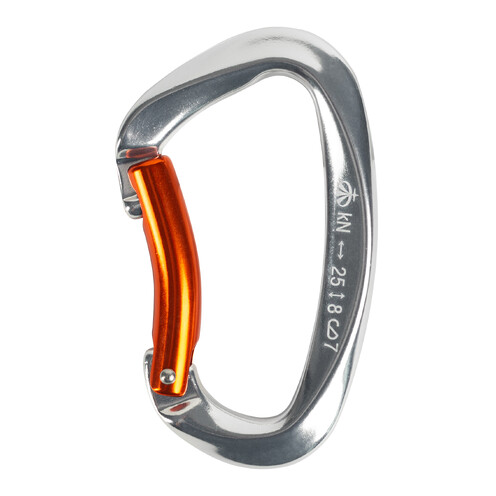 Легкий алюминиевый карабин без муфты с изогнутой защелкой. Используется для комплектования скалолазных оттяжек, и в ситуациях, при которых важна скорость вщелкивания. Изогнутая защелка облегчает вщелкивание веревки в карабин. Применяется в скалолазании, альпинизме, спортивном туризме и спелеологии. Увеличена площадь зоны контакта с веревкой или анкерной точкой для повышения износостойкости карабина. Тип защелки Keylock облегчает выщелкивание. Широкое раскрытие обеспечивает удобство использования карабина.